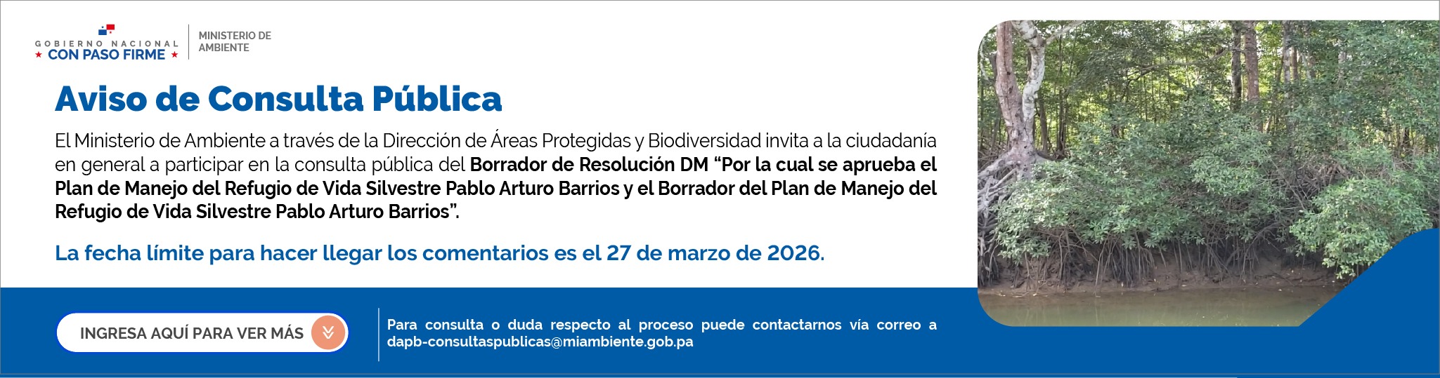 El Ministerio de Ambiente (MiAMBIENTE), a través de la Dirección de Evaluación de Impacto Ambiental, en cumplimiento del Decreto Ejecutivo