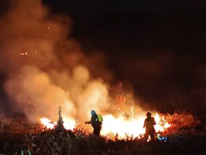 Coclé, 1 de abril de 2026.- Ante un incendio detectado la tarde de este 30 de marzo en la Reserva Hídrica y Bosque Protegido Cerrezuela, en la provincia de Coclé, personal del Ministerio de Ambiente (MiAMBIENTE) junto a brigadistas forestales activaron los protocolos para contener y extinguir un incendio de masa vegetal (IMAVE) que estaba localizado bajo la servidumbre de líneas de transmisión eléctrica pertenecientes a la ETESA y amenazó con extenderse hacia áreas de bosque seco tropical.