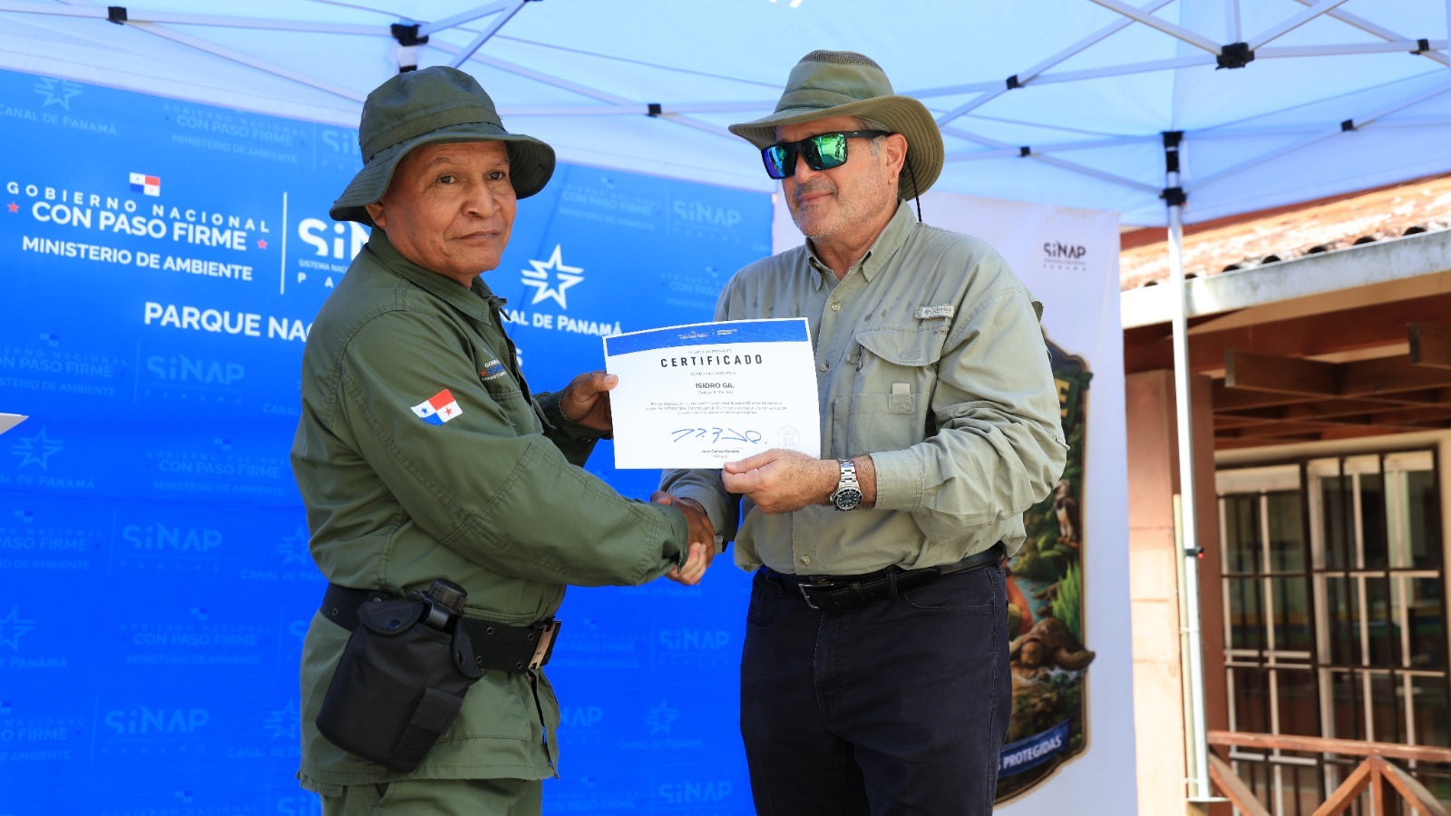 Reconocen trayectorias de hasta 50 años de servicio El Ministerio de Ambiente entregó 34 reconocimientos a guardaparques con más de 20 años de servicio, como parte de la conmemoración del Día Nacional del Guardaparque, celebrado en el Parque Nacional Chagres, siendo el de mayor antigüedad un servidor con 50 años de trayectoria. En el marco del acto, el ministro de Ambiente, Juan Carlos Navarro, solicitó un minuto de silencio en honor a los nueve guardaparques fallecidos el 18 de enero de 1980, en un accidente ocurrido en Loma de la Mermeja, corregimiento de San Francisco, provincia de Veraguas. Este hecho