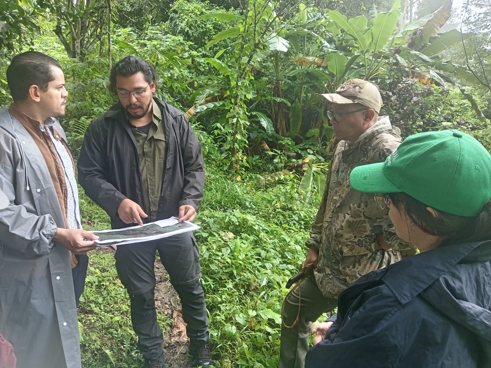 Durante el recorrido, el equipo técnico presentó el croquis del proyecto, detallando los puntos de adecuación del sendero y la ubicación de los cultivos que forman parte de la propuesta productiva y turística.