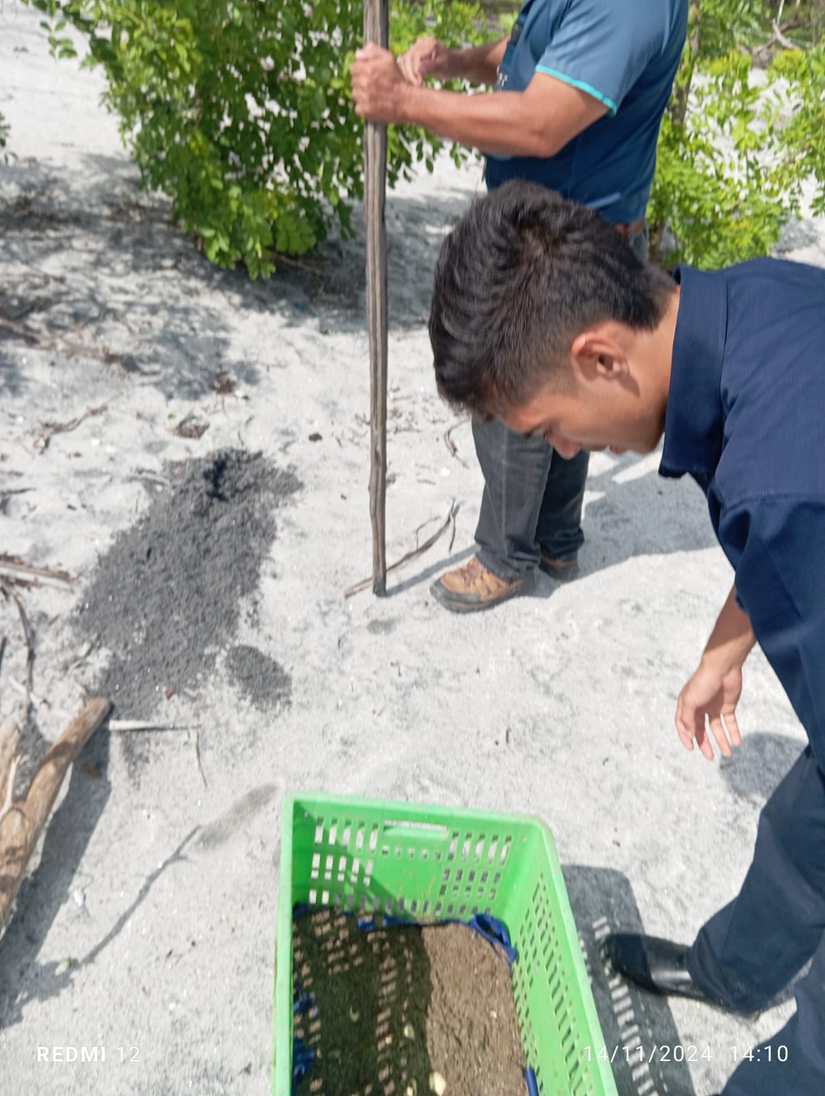 Esta acción se desarrolló en colaboración con Federico Berdores, residente en la comunidad de Bijagual, quien se encargó de custodiar a esta especie de tortuga y sus huevos, indicando que encontró los huevos expuestos a los depredadores, en la playa de Los Azules y decidió cuidarlos.