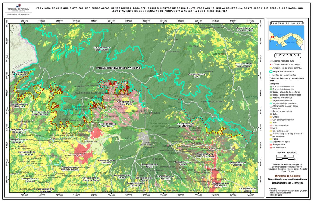 El Ministerio de Ambiente (MiAMBIENTE) a través de la Dirección de Información Ambiental (DIAM), la Dirección de Áreas Protegidas y Biodiversidad (DAPB) y la Dirección Regional de la institución en Chiriquí, han logrado concluir los trabajos de saneamiento de los Límites del Parque Internacional La Amistad (PILA) lado Pacífico. Para tal efecto, se contó con el financiamiento del Fideicomiso Ecológico de Panamá (FIDECO) y también con el apoyo del Centro de Incidencia Ambiental (CIAM).