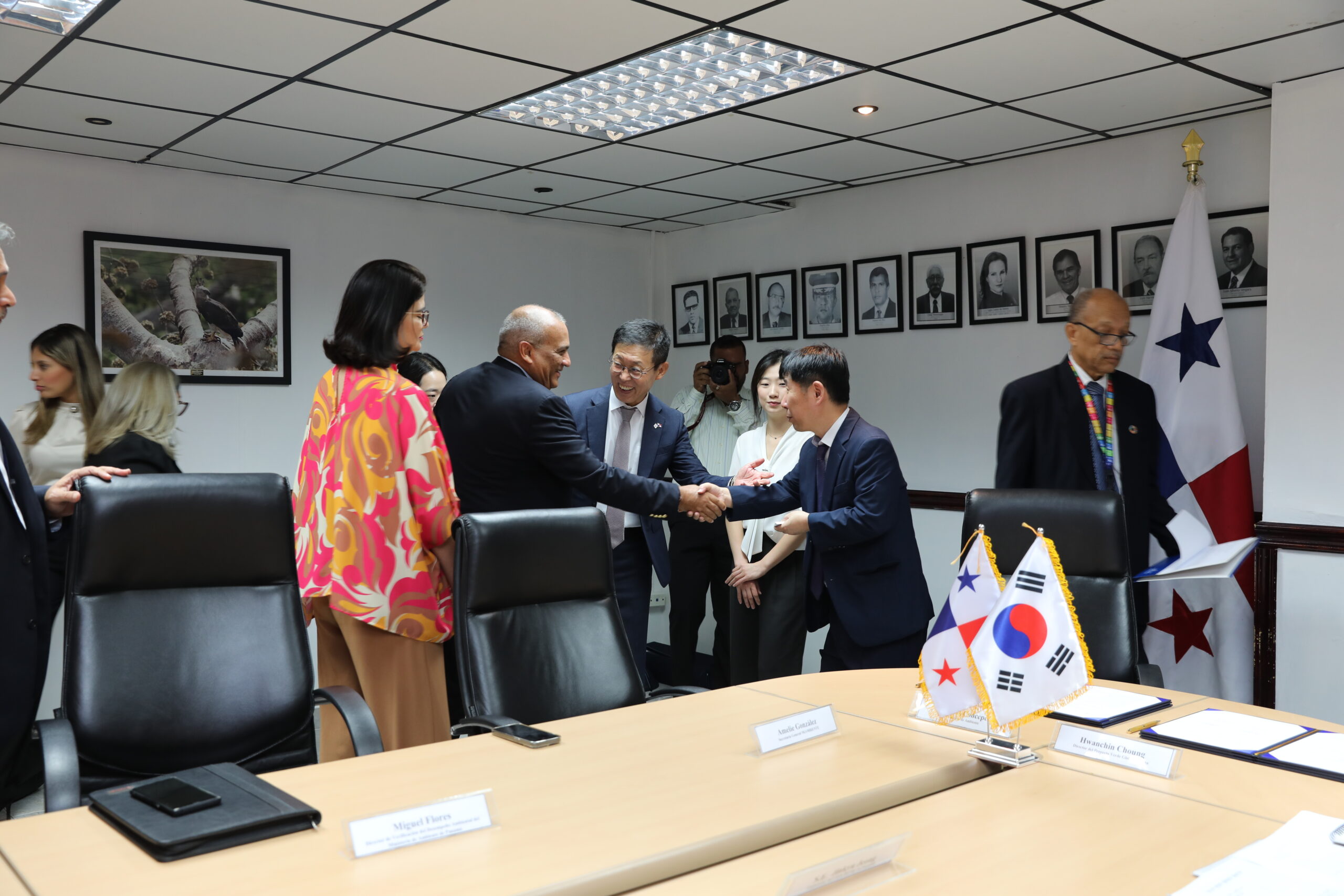 A la firma de este acuerdo asistieron el ministro de Ambiente, Milciades Concepción, el embajador de Corea del Sur en Panamá Jinkyu Jeong, el director del Proyecto Verde Global del Ministerio de Ambiente de Corea Hwanchin Choung, Amelie González A., secretaria general y Miguel Flores, director de Verificación del Desempeño Ambiental de MiAMBIENTE; así como Sumi Lim, del Instituto de Industria y Tecnología Ambiental de Corea del Sur.