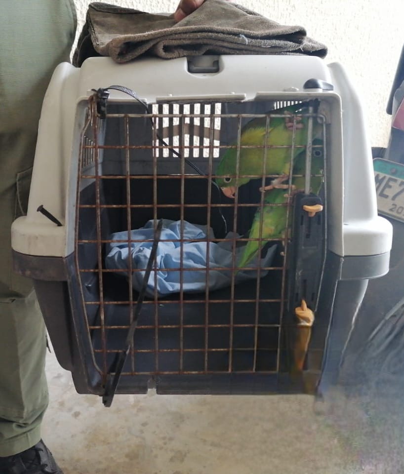 Personal de la Sección de Áreas Protegidas y Biodiversidad del Ministerio de Ambiente (MiAMBIENTE) Panamá Oeste, en coordinación con el personal Dirección de Inteligencia Policial, Dirección Nacional de Investigación Judicial (DIJ), Policía Ambiental Rural y Turística, se atendió una denuncia a través del Web Chat-Ministerio de Ambiente sobre tenencia de fauna silvestre, donde se decomisó un mono tití y dos perico barbinaranja en el sector de Ciudad Esperanza, corregimiento de Vacamonte, distrito de Arraiján, provincia de Panamá Oeste.