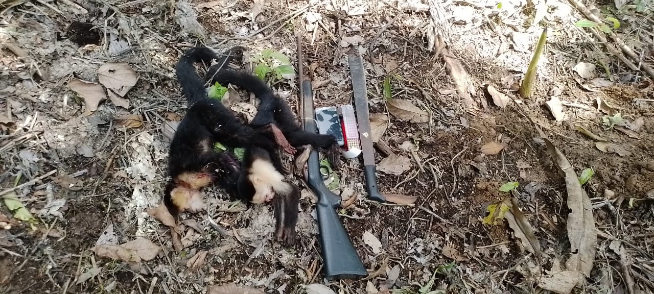 Al momento de su detención el sujeto mantenía dos ejemplares de la especie silvestre mono cariblanco ( cebus capusinus) y un arma de fuego tipo rifle calibre 22 con 30 municiones sin detonar.