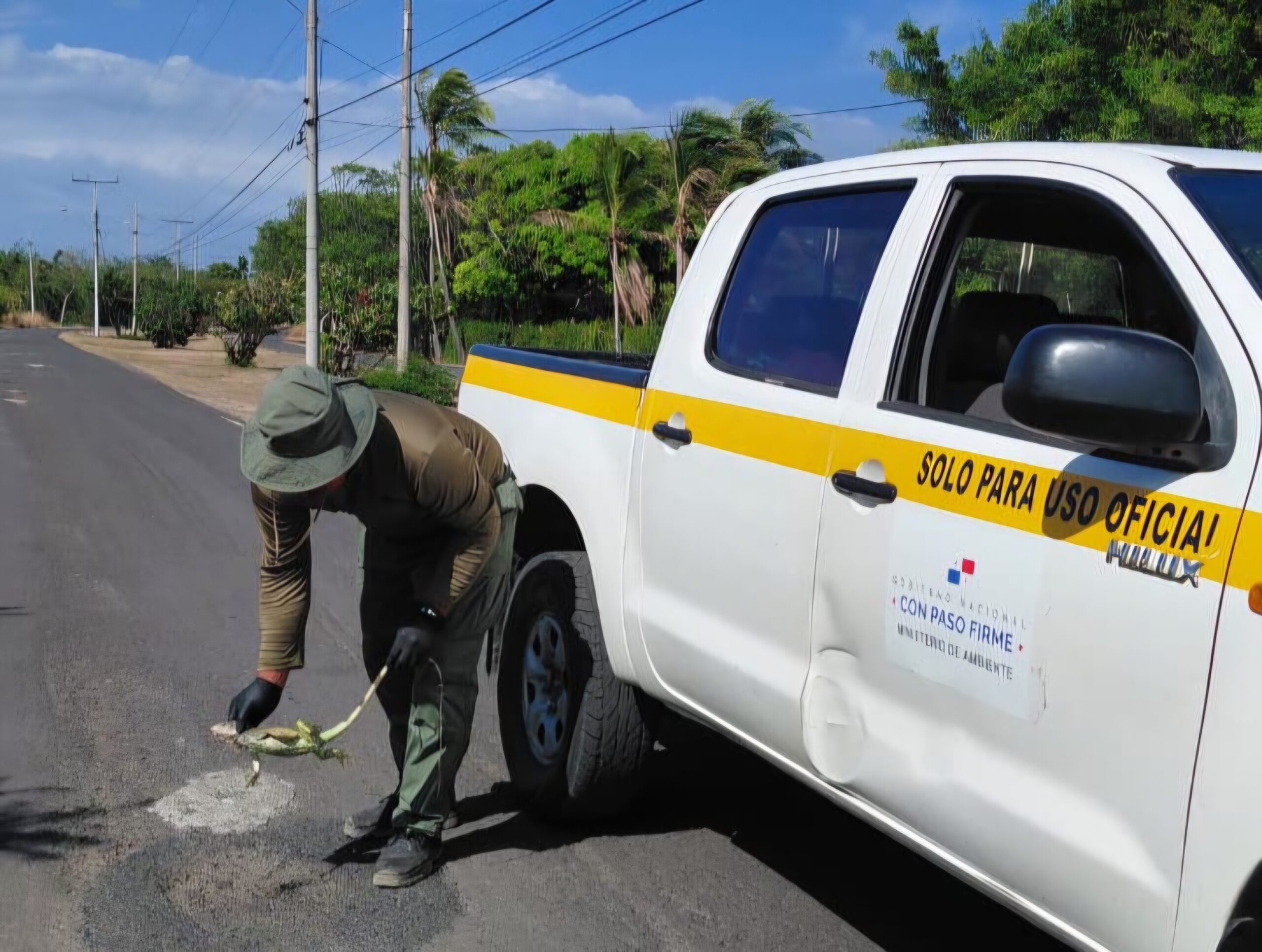 Panamá Oeste,  10 de abril de 2026. Durante un patrullaje de control y vigilancia en la vía que conduce hacia Punta Chame, guardaparques del Área Protegida Manglares de la Bahía de Chame del Ministerio de Ambiente, dirección regional de Panamá Oeste, detectaron dos ejemplares de iguana verde, muerta en la vía, por lo que se presume que fue atropellada, los cuales fueron retirados de la carretera para evitar riesgos a los conductores y prevenir afectaciones al entorno.