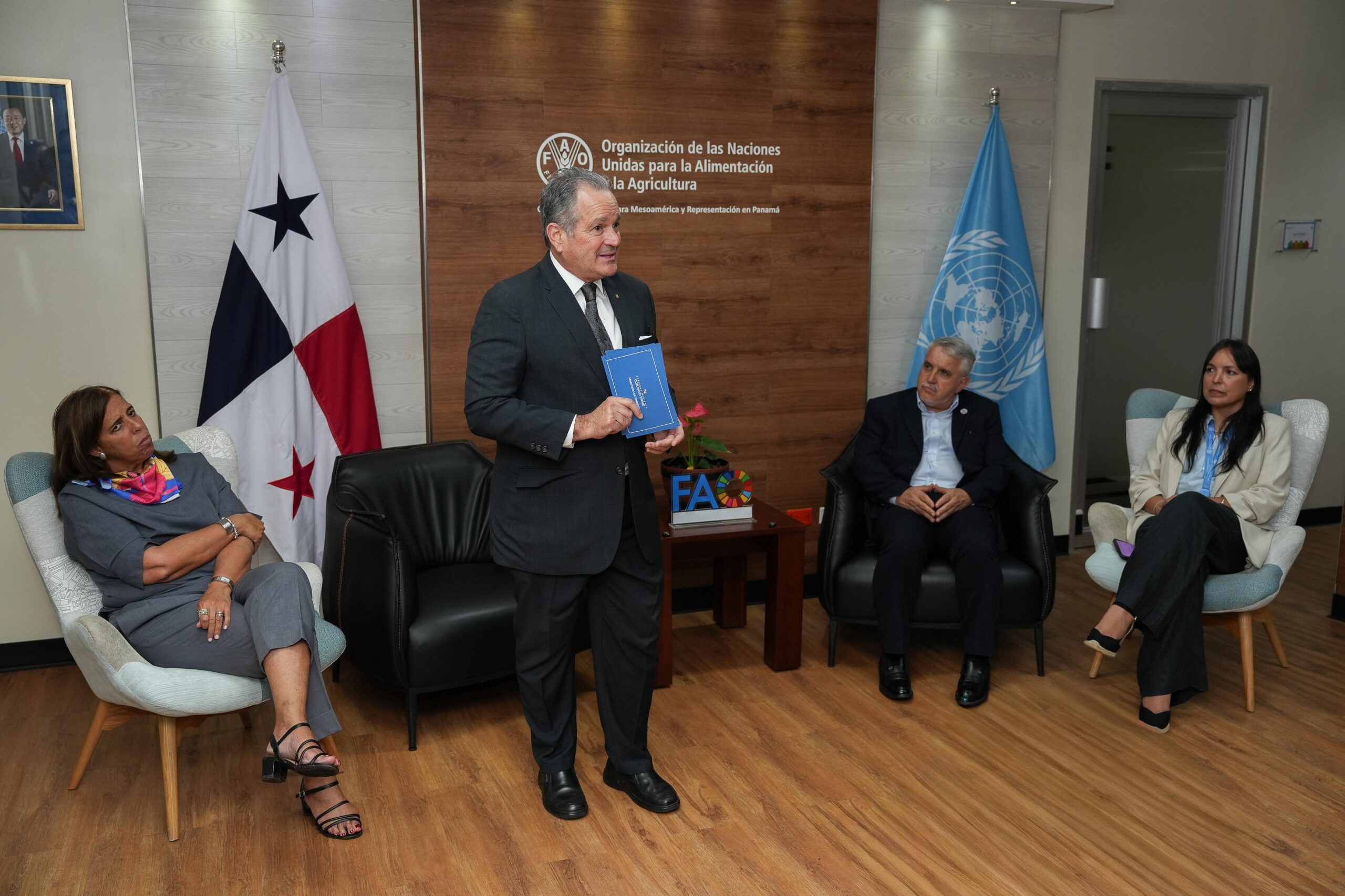 Ciudad de Panamá, 22 de octubre de 2025. En el marco de los esfuerzos nacionales para enfrentar la triple crisis ambiental del cambio climático, la pérdida de biodiversidad y la degradación de tierras, el Ministro de Ambiente, Juan Carlos Navarro, sostuvo una reunión de alto nivel con representantes de la Organización de las Naciones Unidas para la Alimentación y la Agricultura (FAO).