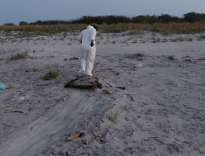 Como parte de las acciones permanentes de control y vigilancia dentro del área protegida Manglares de la Bahía de Chame y sus zonas de amortiguamiento, unidades de guardaparques del Ministerio de Ambiente (MiAMBIENTE) realizaron un patrullaje en el sector conocido como Playa Cabezo, donde se registró el hallazgo de una tortuga marina sin vida.