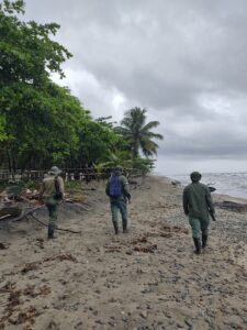 Veraguas, 11 de abril de 2026.-A raíz de denuncias recibidas por caza de iguanas y extracción de sus huevos, guardaparques del Parque Nacional Reverendo Padre Jesús Héctor Gallego Herrera en la provincia de Veraguas, se trasladaron desde la playa de Calovébora, hacia el sector conocido como La Isla, para atender comprobar la información recibida a través de los reportes.