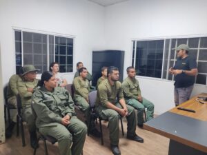En la agenda de actividades para garantizar la conservación de la biodiversidad e integridad ecológica del área protegida, el biólogo Ricardo Moreno brindó una capacitación especializada a los guardaparques sobre la conservación de felinos silvestres y la gestión de conflictos entre humanos y jaguares. Esta formación contribuye a mejorar las capacidades del personal para implementar acciones de manejo adecuado y transmitir conocimientos a las comunidades, promoviendo una convivencia más armónica entre la fauna silvestre y la población.