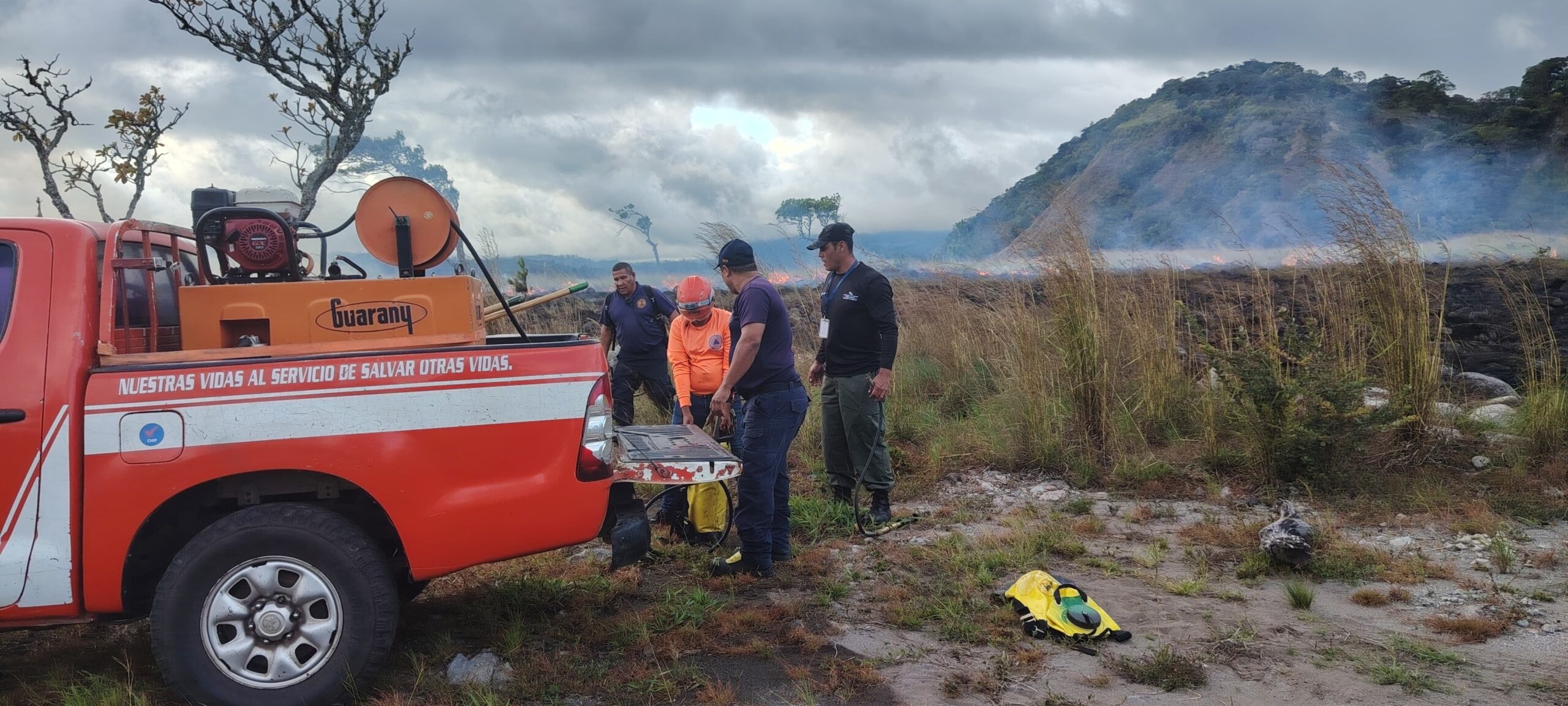 Pasadas las 5:25 p.m., personal del Ministerio de Ambiente (MiAMBIENTE) y unidades del Sistema Nacional de Protección Civil (Sinaproc) se incorporaron a las labores de control y vigilancia del siniestro.