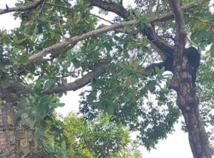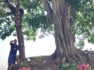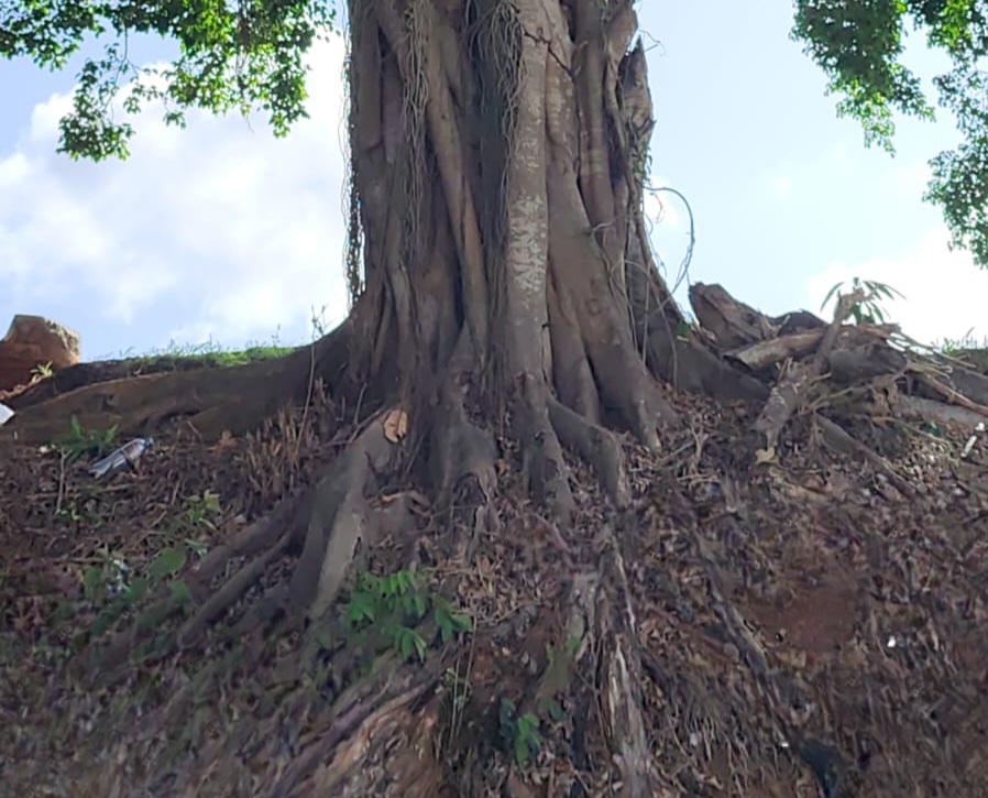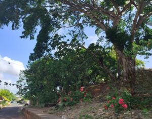 Se detalló, que en las inmediaciones se identificó un árbol de marañón de pepita (Anacardium occidentale), también ubicado en un talud y en mal estado fitosanitario, lo que incrementa el nivel de riesgo en el área.