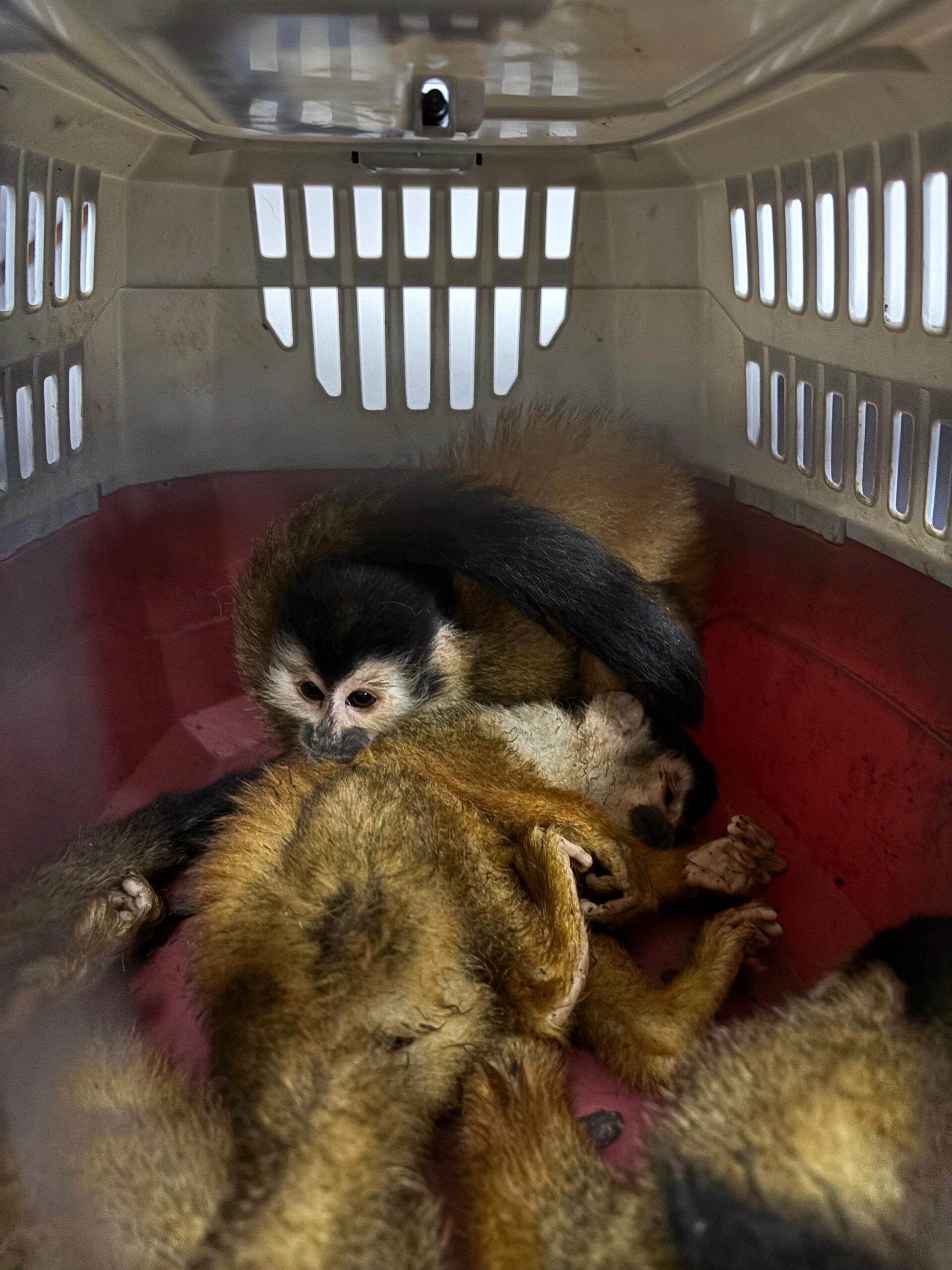 Los tres primates fueron trasladados a un sitio de apoyo y atención veterinaria voluntaria, donde una profesional idónea confirmó el grave deterioro físico de los ejemplares. Dos fallecieron poco después a consecuencia de la desnutrición, deshidratación y el estrés causado por el manejo inadecuado durante el traslado ilegal. El tercer mono tití, hembra, permanece bajo observación, en estado delicado.