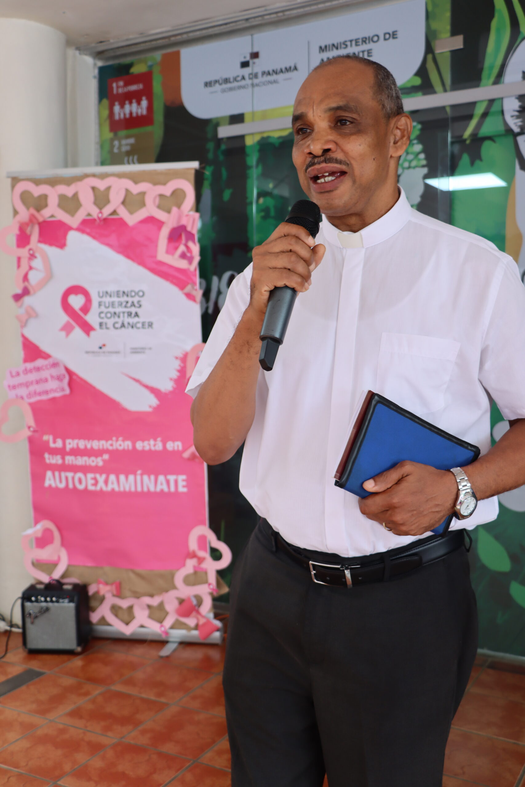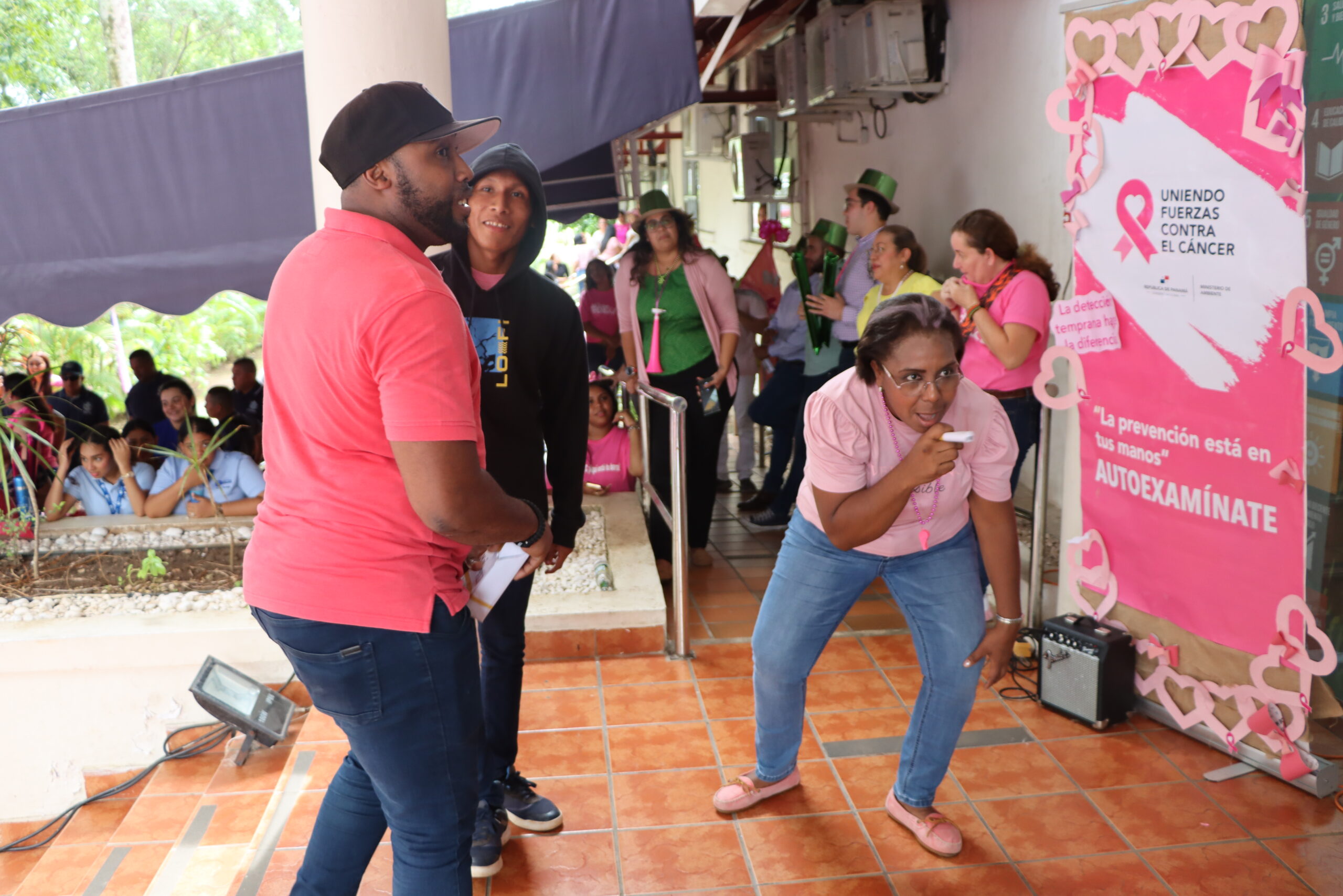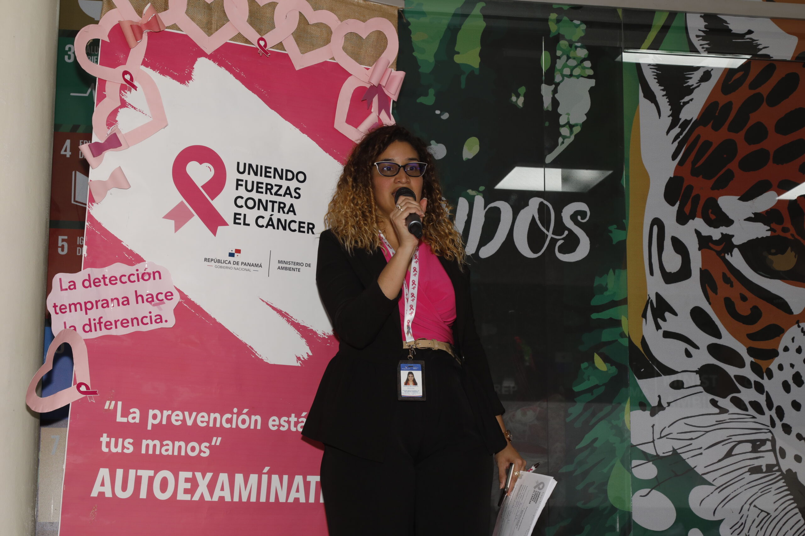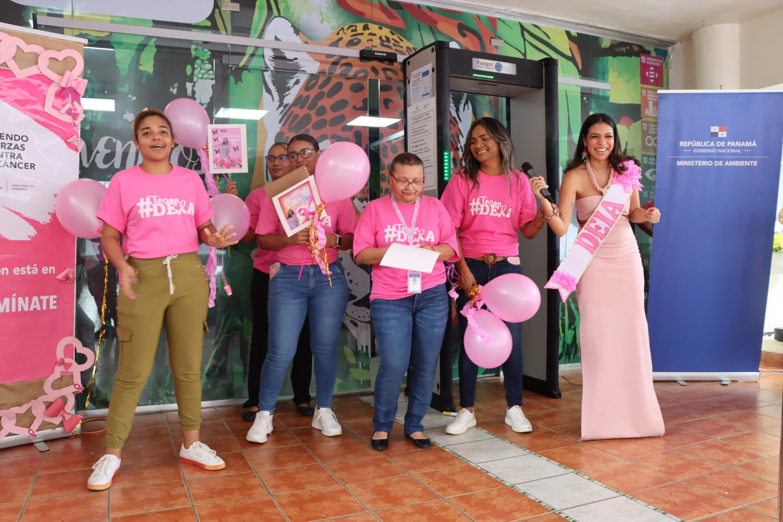 En esta actividad participaron: Diana Laguna viceministra del Ministerio de Ambiente, Amelie González secretaria general del Ministerio de Ambiente, Madelyne Chorchi psicóloga de la oficina de recursos humanos, Marlene Naranjo jefa de capacitación y desarrollo del servidor público, Magalys Potas de FUNDACANCER, Fernando Juárez Fundación Pro Fe, funcionarios del Ministerio de Ambiente y estudiantes de UDELAS.