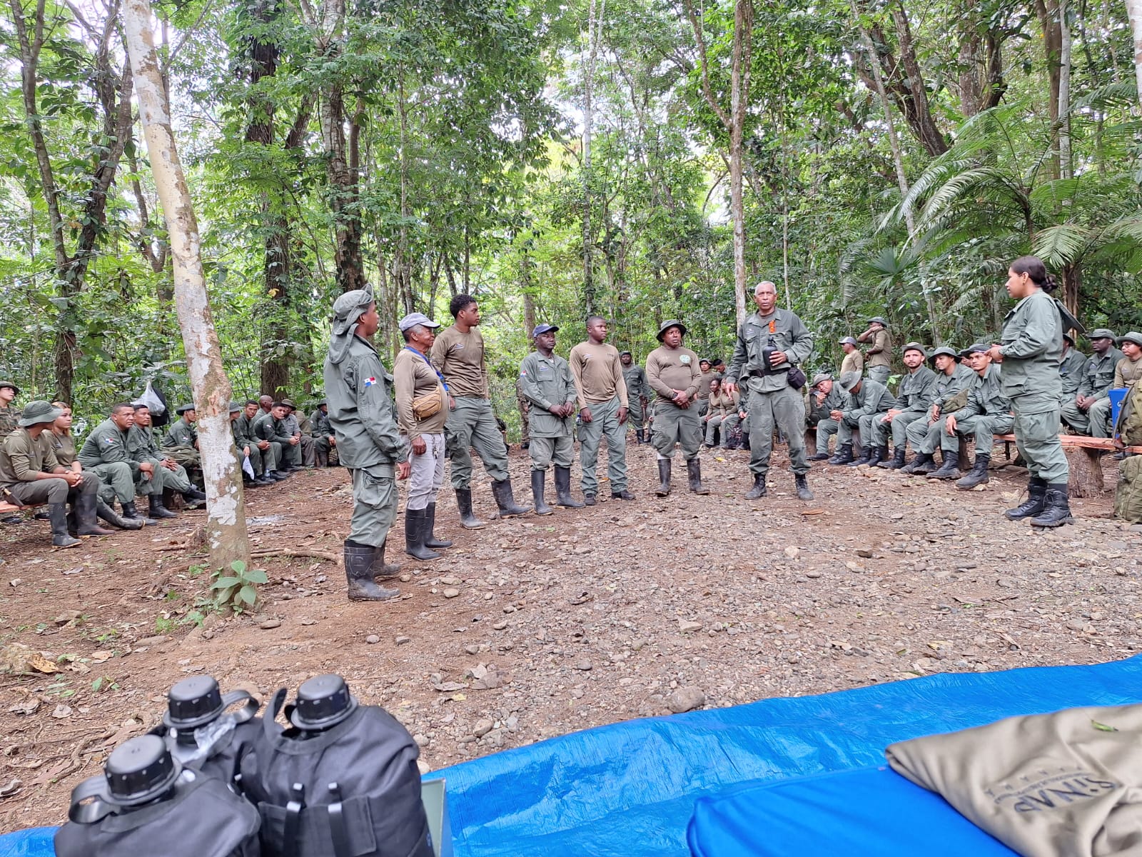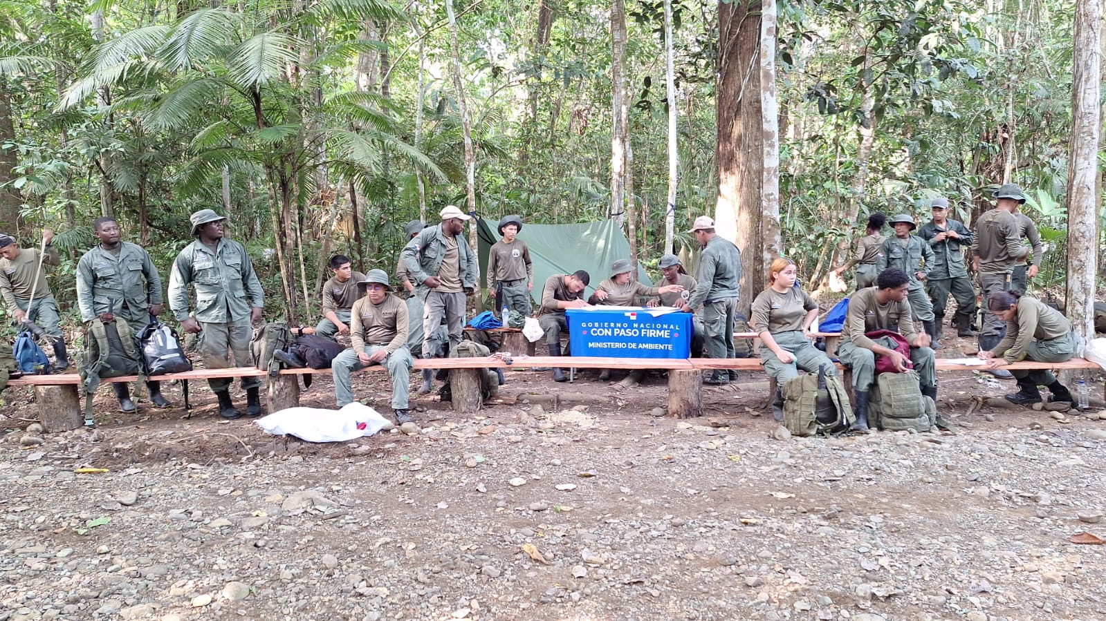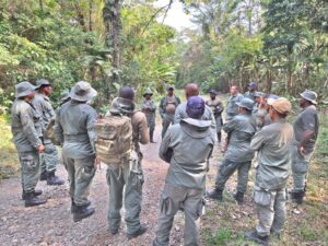 La actividad contó con la participación de Yadira Pinzón, jefa nacional de Control y Vigilancia del Ministerio de Ambiente, así como del subcomisionado Abilio González, jefe del Batallón Central del Servicio Nacional de Fronteras (SENAFRONT), quienes junto al equipo del Parque Nacional Darién y los guardaparques realizaron un recorrido hacia la estación Rancho Frío, con el propósito de fortalecer la coordinación de acciones de patrullaje, capacitación y planificación de nuevos retos operativos en esta importante área protegida.