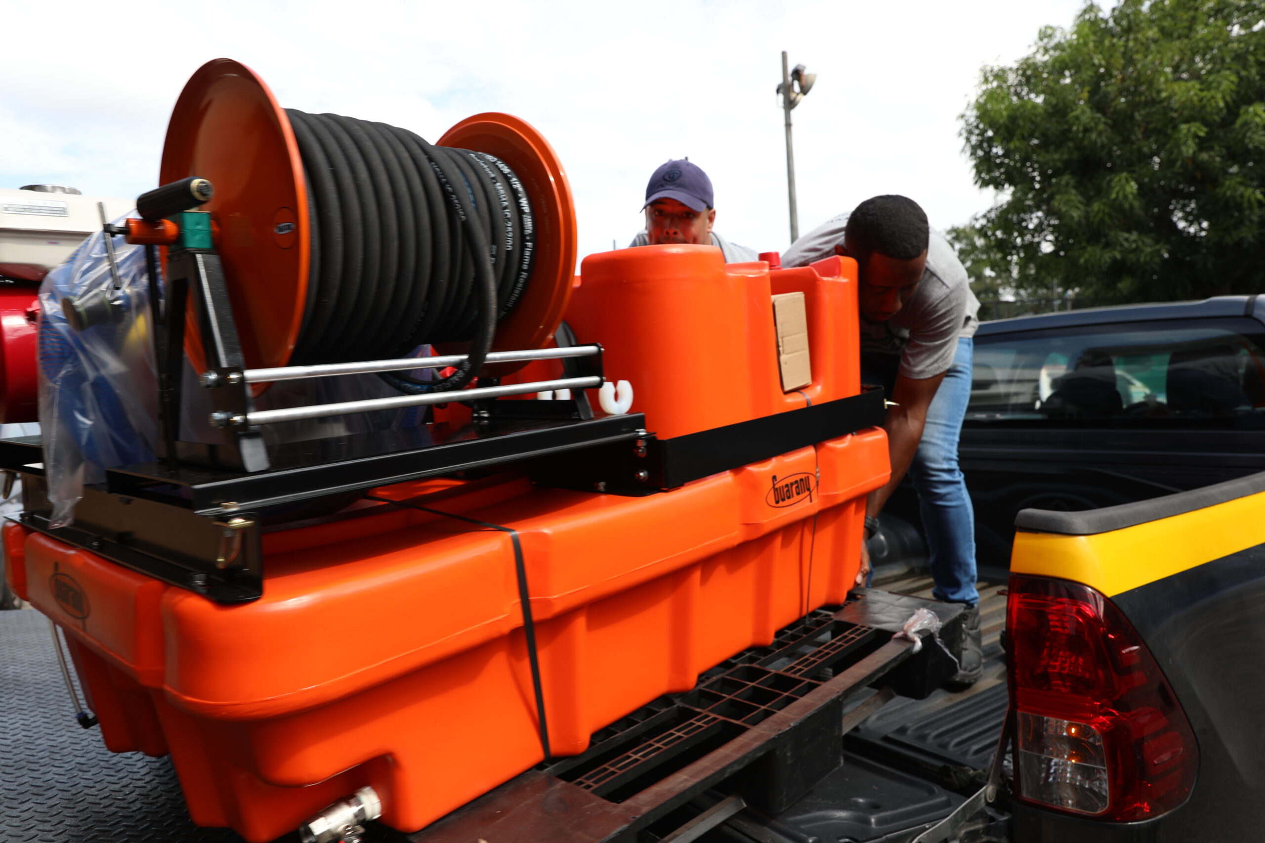 El equipo entregado consta de un tanque rígido movible para vehículo todo terreno confeccionado de material de fibra de vidrio u otro material resistente a impactos con la capacidad no menor a 400 litros para una mayor eficiencia en repeler las llamas.