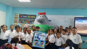 Como parte de la jornada educativa, los estudiantes también conocieron a Moana, el manatí inflable de MiAMBIENTE, un personaje utilizado en actividades de educación ambiental para promover la protección de los recursos naturales. Asimismo, participaron en una zona de colorear y elaboraron manualidades en forma de gota de agua, resaltando el eslogan “Gota a gota, el agua se agota”, reforzando de manera creativa el mensaje de conservación.