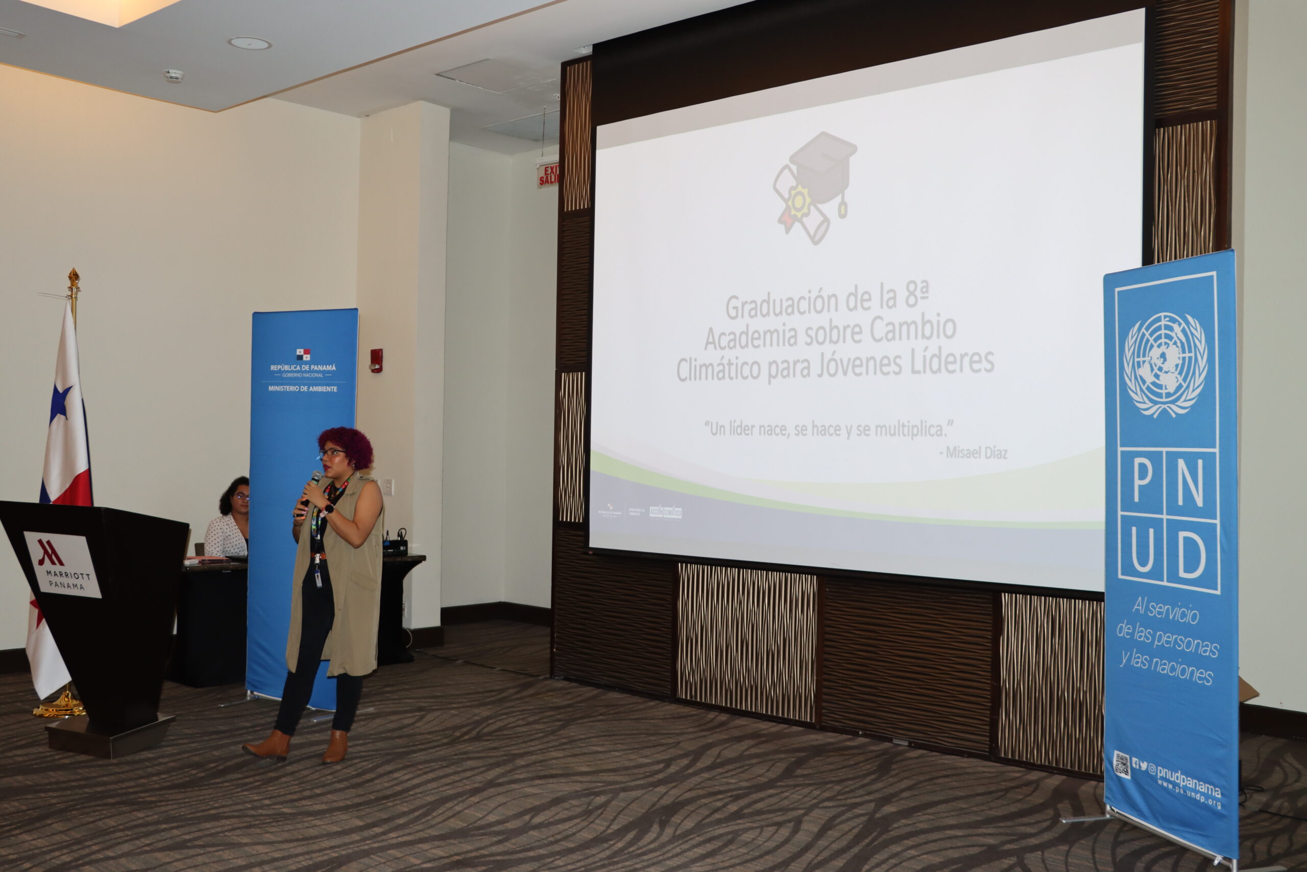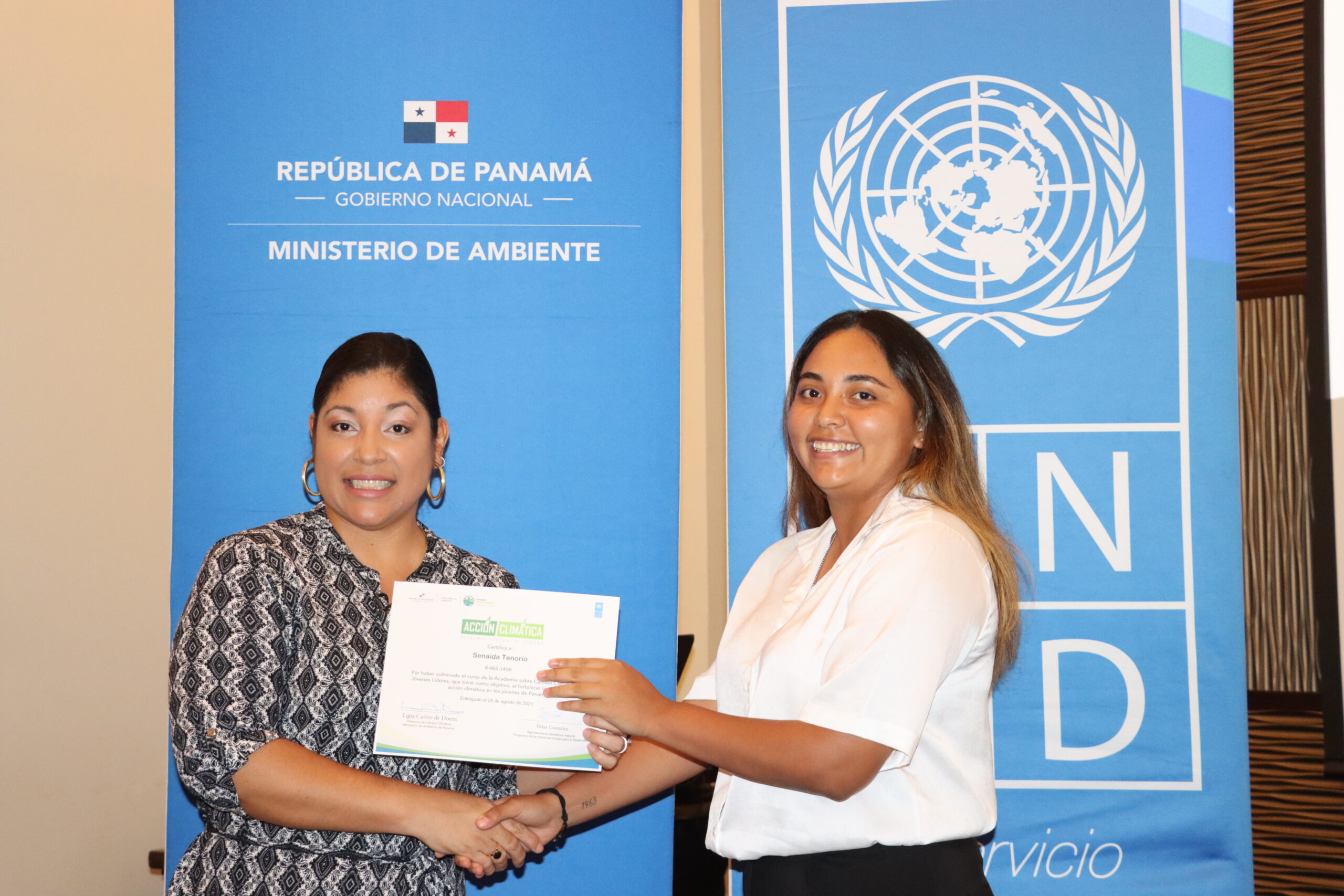 En esta graduación estuvieron presente: Ligia Castro de Doens, directora nacional de Cambio Climático del Ministerio de Ambiente, Anarela Sánchez de PNUD, María Núñez coordinadora de proyectos de Natura, Thays Noriega Ministerio de Salud, Marsha Díaz Impacto Positivo y personal técnico del Ministerio de Ambiente.