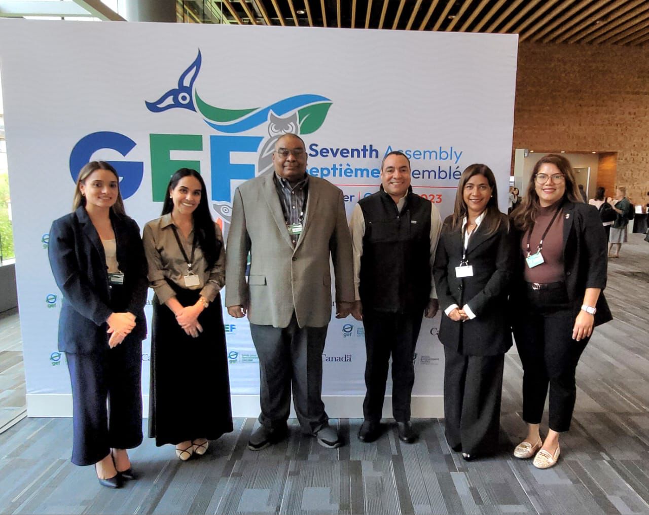 La delegación panameña encabezada por la viceministra Laguna; Raúl Pinedo, punto focal operativo del GEF y Analista de Asuntos Económicos de la Oficina de Planificación; Fabiola Vega, jefa de la Oficina de Cooperación Técnica Internacional; y Parveen Punjabi, gerente del Fideicomiso de Agua, Áreas Protegidas y Vida Silvestre del Ministerio de Ambiente.