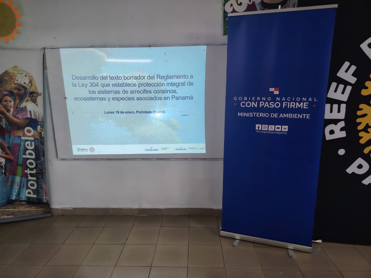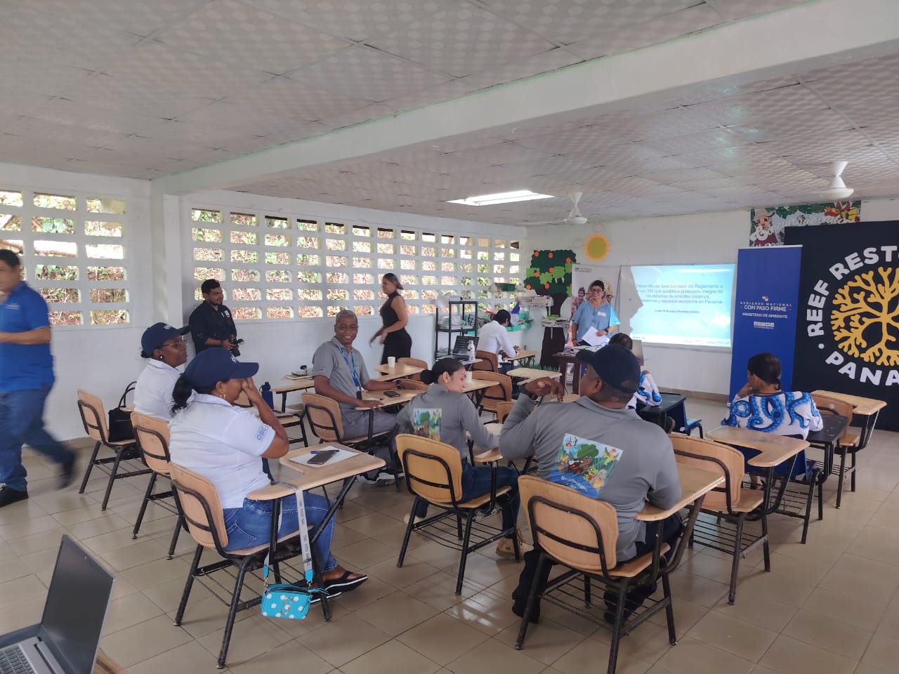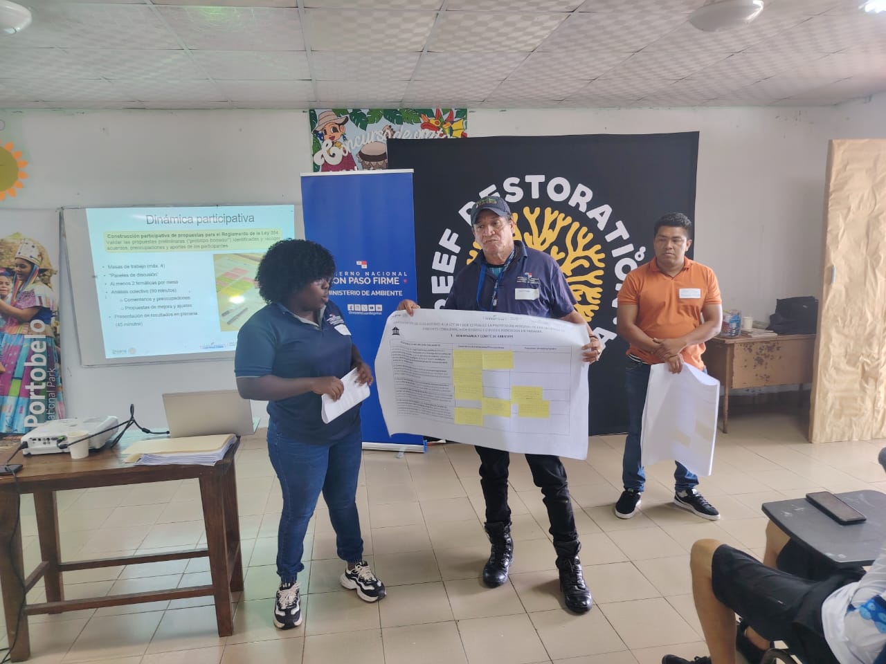 Colón, 21 de enero de 2026- Con el objetivo de avanzar en la elaboración del reglamento de la Ley 304, que establece la protección integral de los sistemas de arrecifes coralinos, ecosistemas y especies asociadas en Panamá, el Ministerio de Ambiente, a través de la Dirección Regional de Colón y la Sección de Costa y Mares, desarrolló una jornada de capacitación en la Escuela Nuevo Tonocí, ubicada en el distrito de Portobelo.