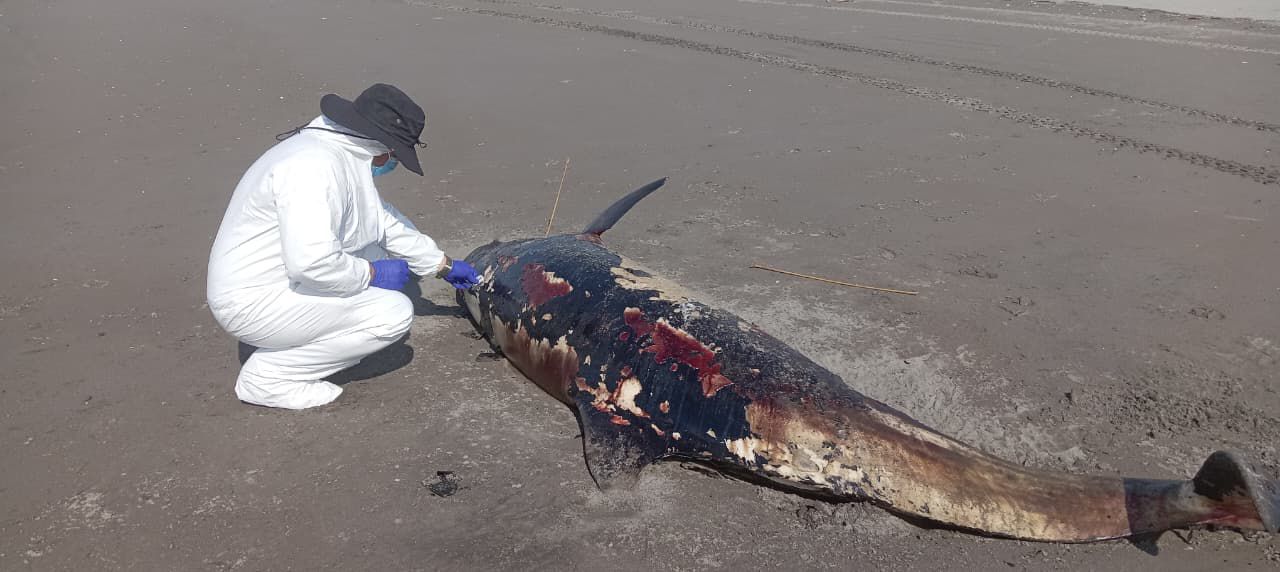 Durante las labores de patrullaje y vigilancia en el Refugio de Vida Silvestre Playa La Barqueta Agrícola, guardaparques de esta área protegida se encontraron con un delfín varado muerto próximo al área de Boca de Hacha, corregimiento de Guarumal, distrito de Alanje, provincia de Chiriquí. En conjunto con personal de la Sección de Costas y Mares se realizó la toma de medidas y datos del ejemplar para evaluar el estado del mamífero marino, además para conocer las posibles causas de su fallecimiento, evidenciando que el cuerpo no presentaba heridas externas. Al momento del hallazgo, el cuerpo estaba siendo aprovechado por