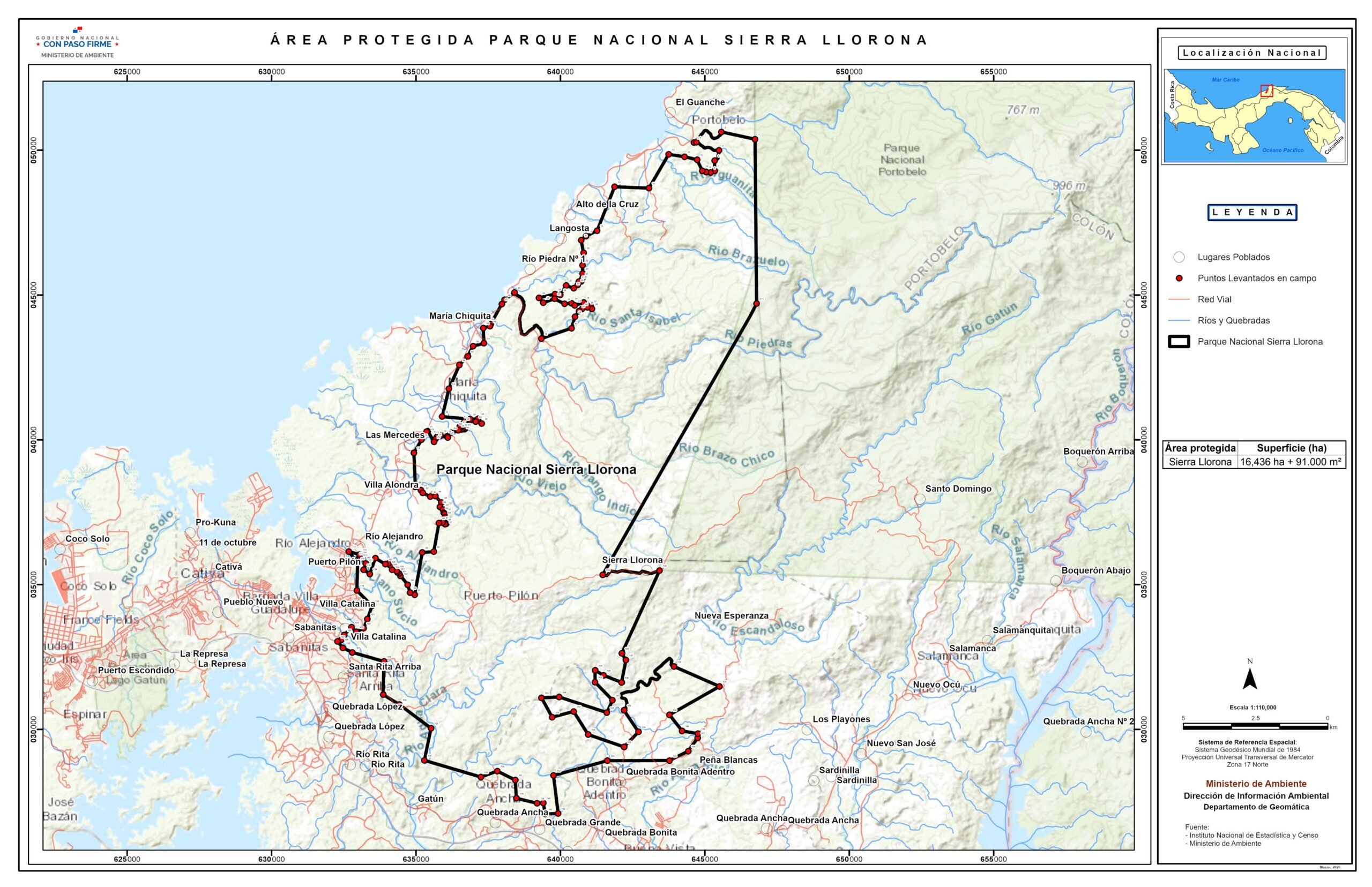 Panamá, 14 de abril de 2026.-El Gobierno Nacional creó el nuevo Parque Nacional Sierra Llorona, localizado en la serranía del mismo nombre entre los distritos de Colón y Portobelo, en la provincia de Colón, mediante Gaceta Oficial 30488 y el Decreto Ejecutivo N°1 del 23 de marzo de 2026. La creación de esta nueva reserva protegerá bosques primarios y ambientes naturales únicos, un refugio natural de 16,436 hectáreas.