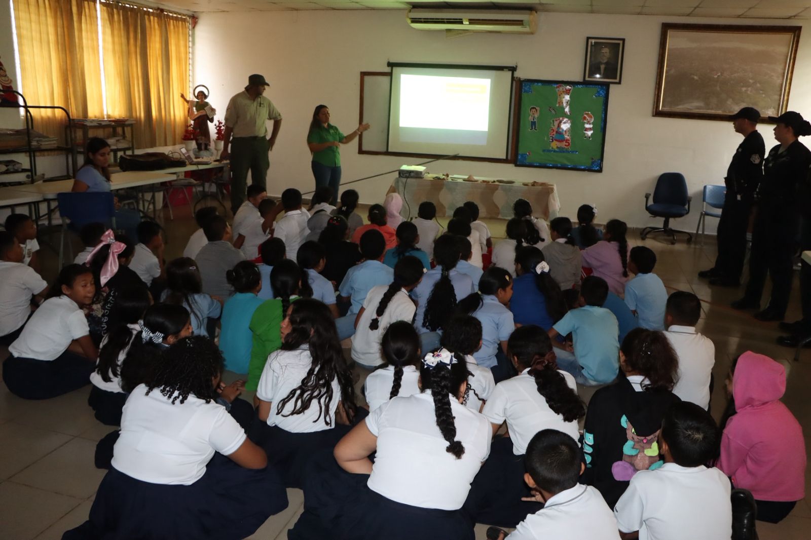 Como parte de la jornada educativa, también estuvo presente la Policía Ambiental y Turística, quienes colaboraron en las actividades y ayudaron a concienciar a los estudiantes sobre la importancia del respeto a los recursos naturales y el turismo responsable dentro de las áreas protegidas.