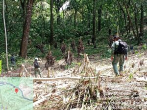 Como parte de las jornadas de vigilancia se estableció un punto de control estacionario en el asentamiento informal de Mata Redonda para detectar el ingreso o salida de posibles infractores al área protegida. Como resultado, se encontró a un sujeto que estaba realizando labores de despeje de bosque y corte de arbustos para ampliar su finca y realizar siembra de cultivos agrícolas, actividades prohibidas dentro del parque. Al ciudadano se le entregó una boleta de citación informándole que incurre en un delito ambiental.