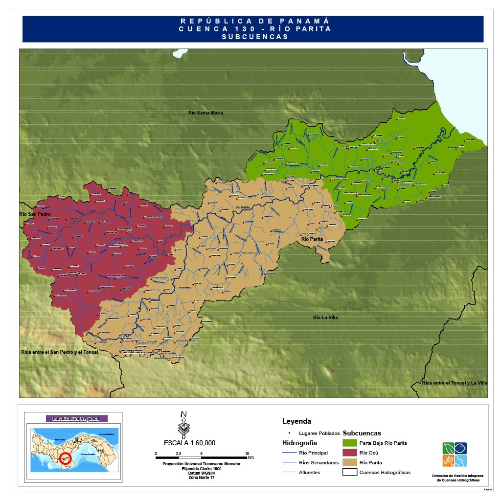 La cuenca 130 del Río Parita, se sub divide en 3 subcuencas que son: el río Ocú, el río parita cuenca baja, y río Parita, éste último se va trabajar en subcuencas Parita 1 y 2 para facilitar el manejo.