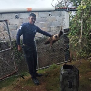 Ante esta situación, el residente decidió comunicarse con guardaparques del Polígono de Tiro Emperador y Balboa Oeste para. Tras recibir la alerta, se realizó el rescate de manera segura, aplicando los protocolos correspondientes para el manejo de fauna silvestre.
