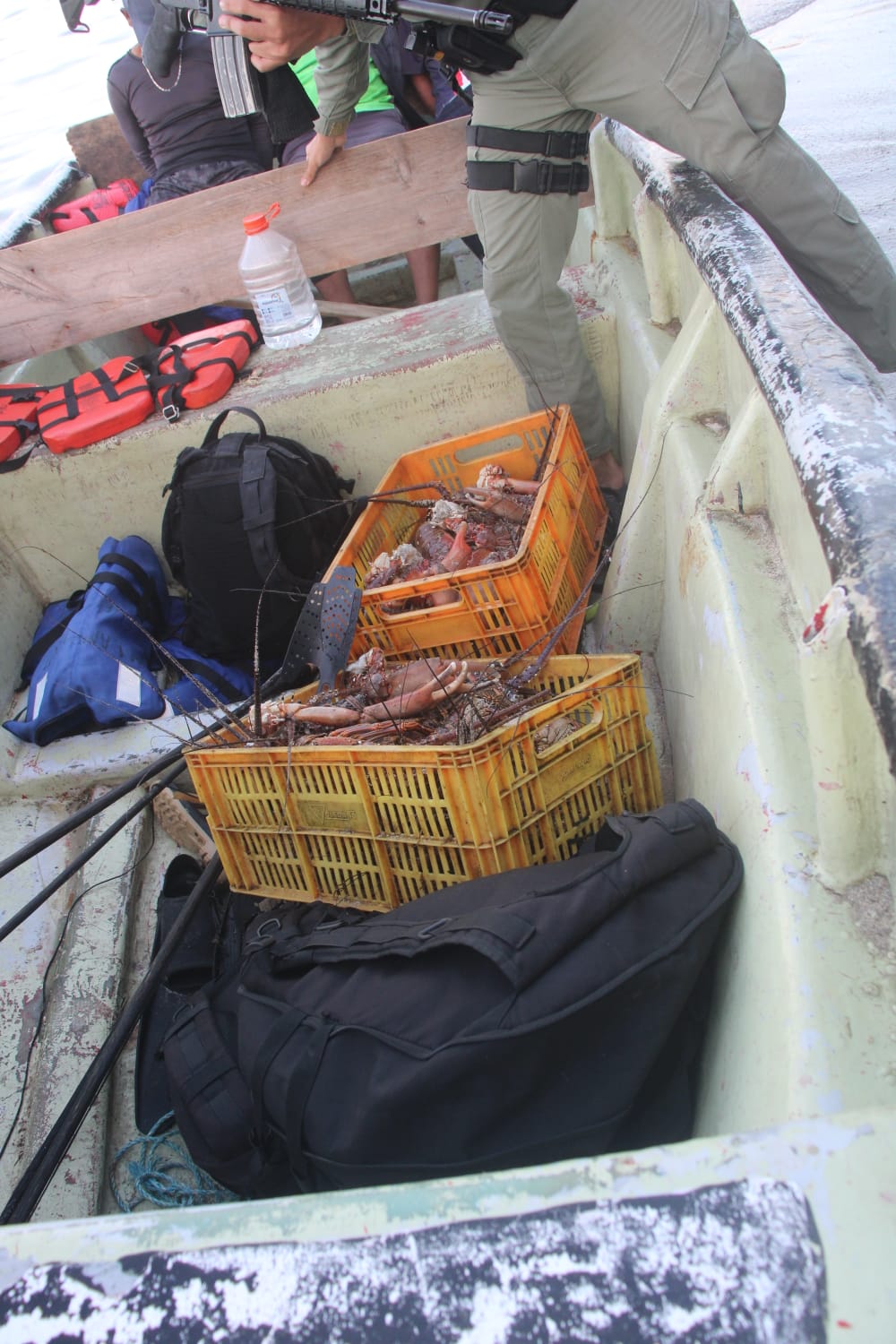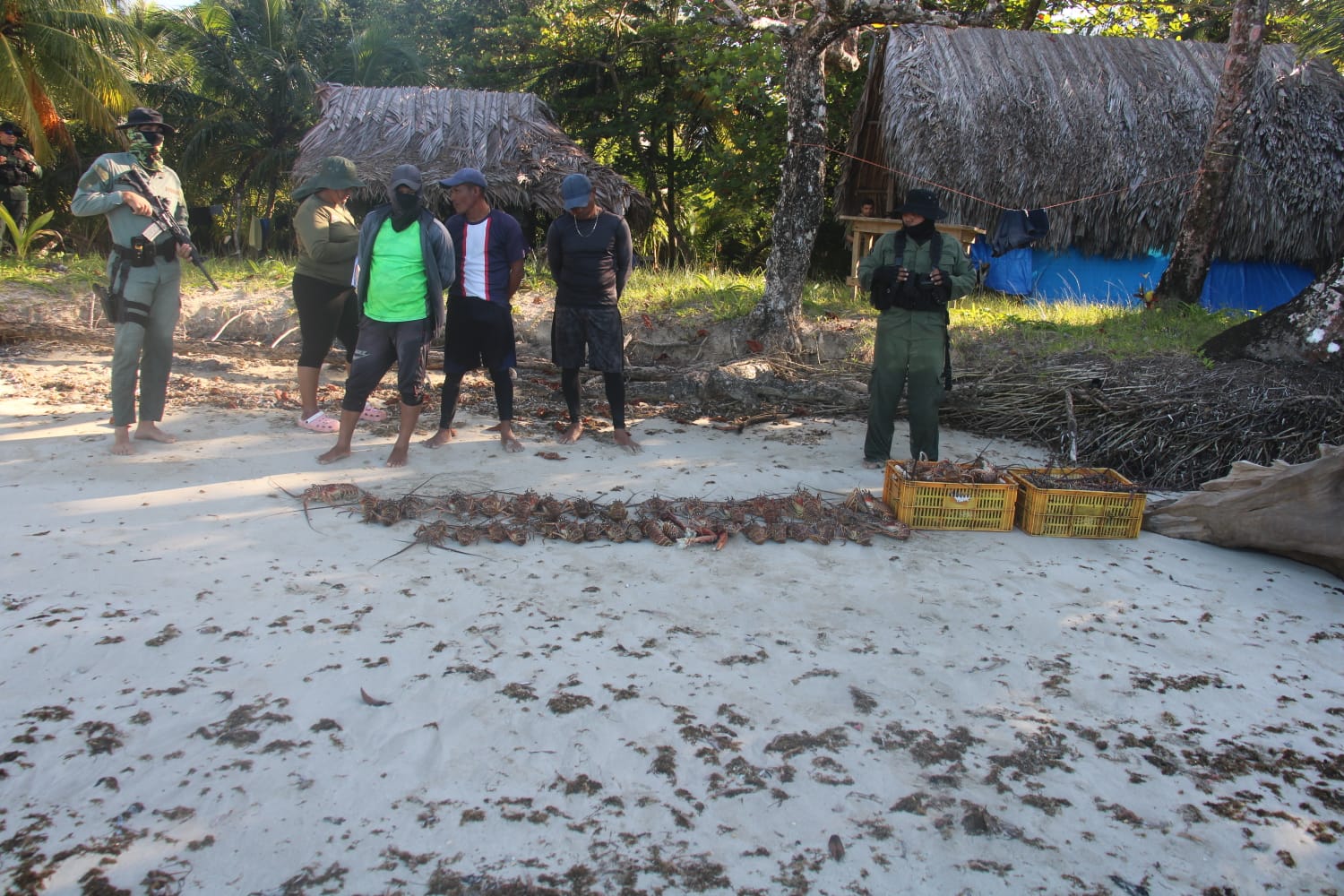 Esta situación constituye una infracción a las normas ambientales establecidas para el área protegida. Además de las langostas, las cuales estaban en dos canastas. También se le decomisó a los tripulantes provenientes del corregimiento de Bahía Azul, dos pares de chapaletas, dos máscaras y cuatro lazos de pesca utilizados para la actividad ilícita.