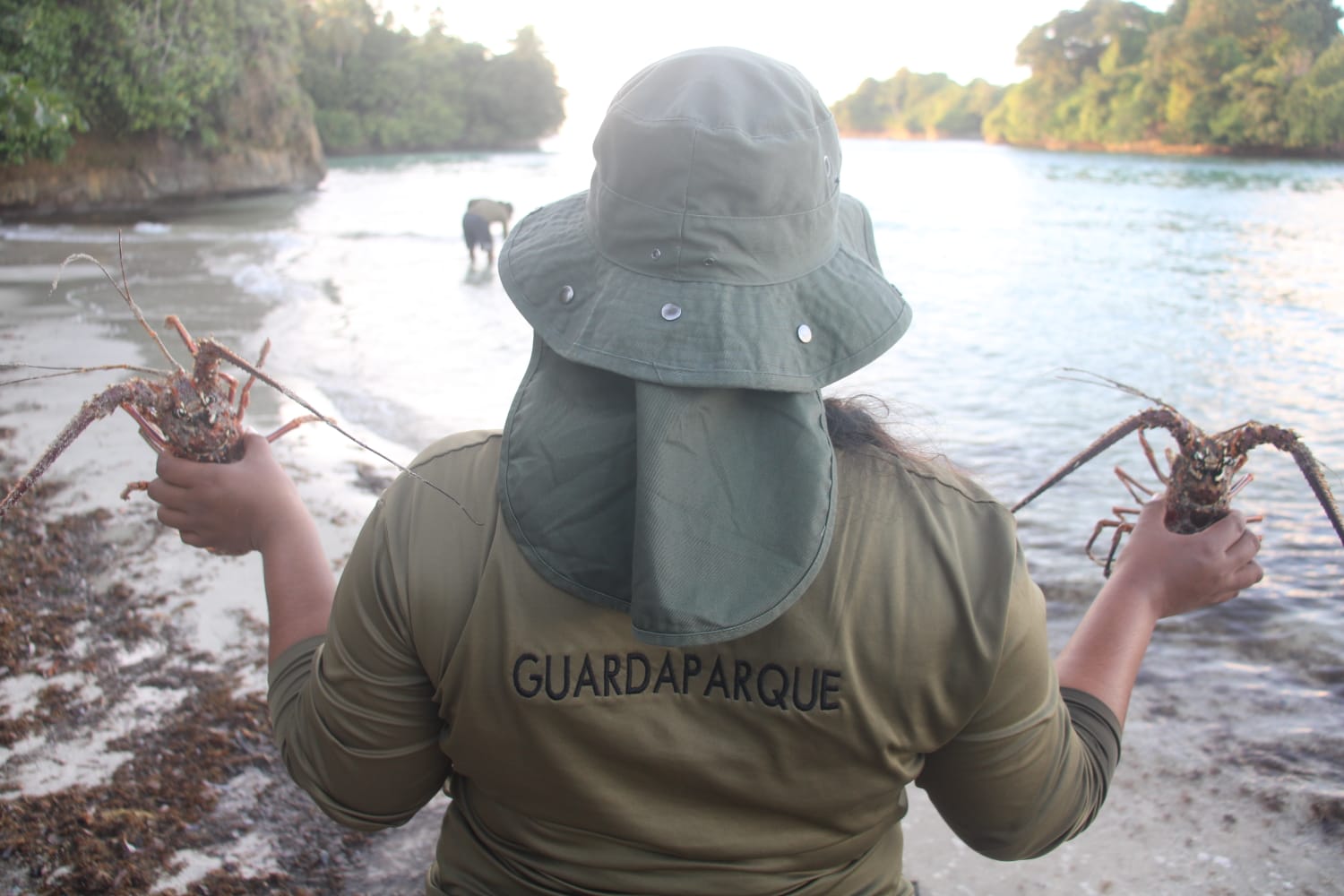 Bocas del Toro, 4 de febrero de 2026. -Durante una jornada de patrullaje marino costero de control y vigilancia en el área protegida Isla Escudo de Veraguas–Degó en coordinación con la Policía Ambiental, guardaparques del Paisaje Protegido Isla Escudo de Veraguas (PPEV) retuvieron una embarcación con tres personas a bordo realizando pesca industrial, las cuales tenían en su poder 91 langostas de diversos tamaños de las cuales 45 fueron devueltas al mar y el resto retenidas como evidencia para la Fiscalia Ambiental.