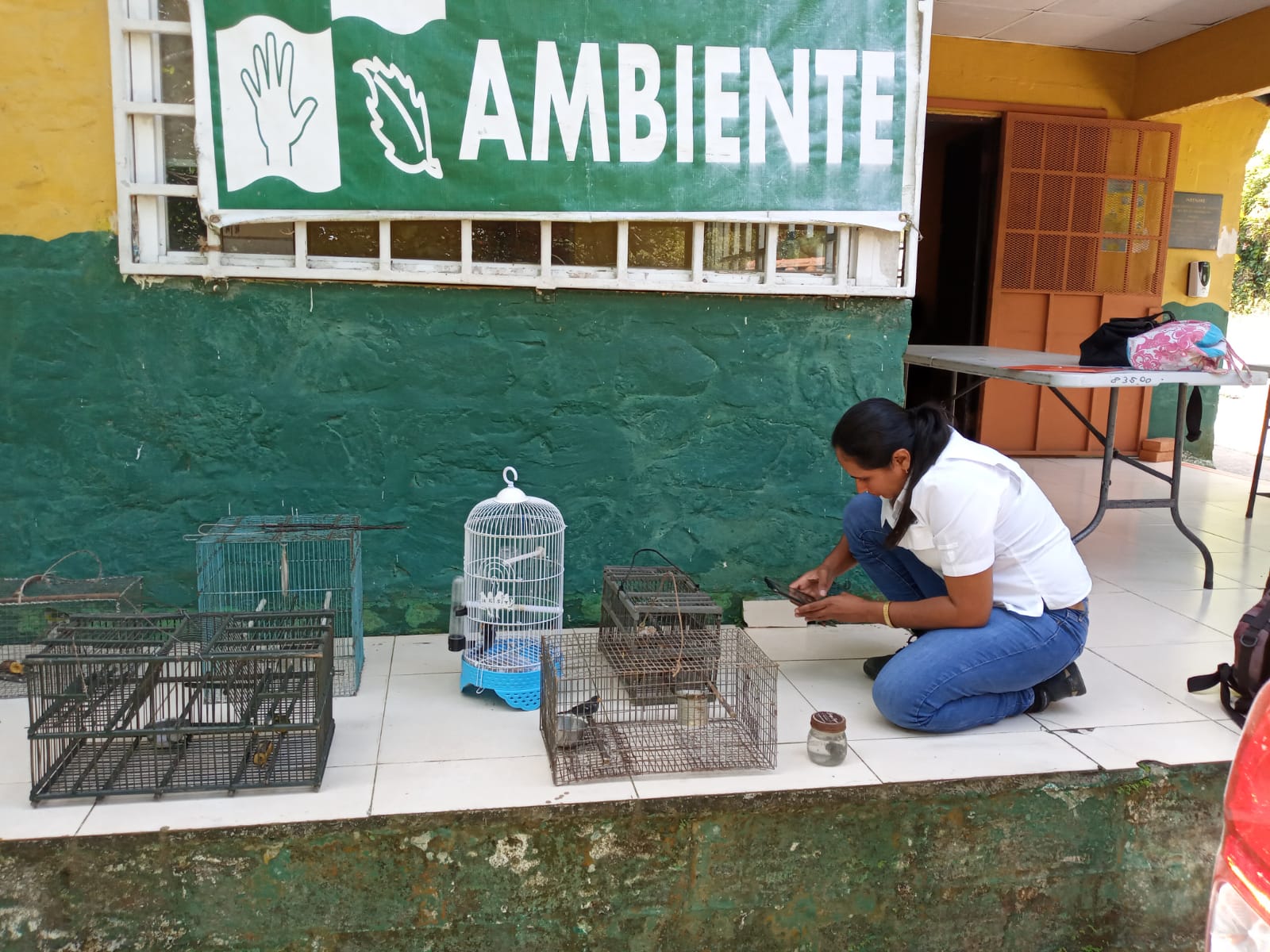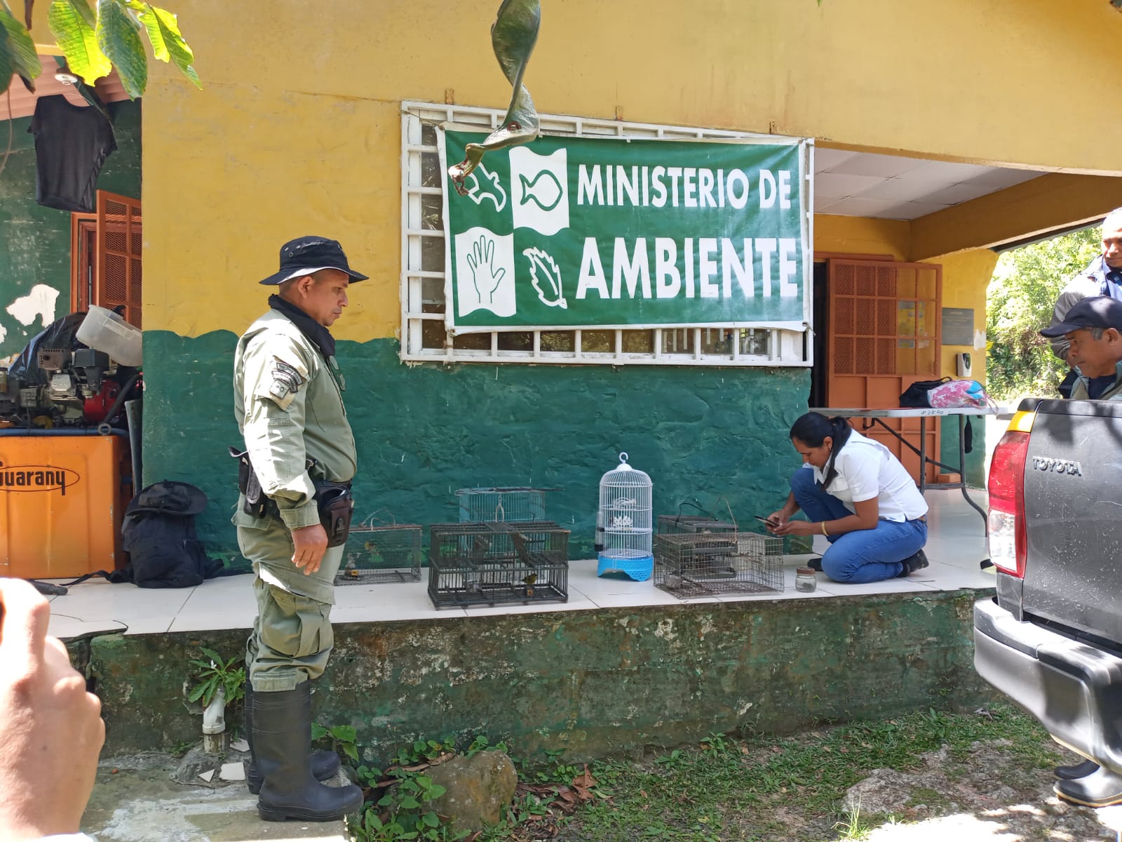 Zuleyla Toribio Madrigal, Bióloga de la sección de Áreas Protegidas y Biodiversidad, manifestó que las aves decomisadas fueron 3 semilleros Pizarroso y 3 Eufonia Coroniamarilla, 6 jaulas trampa y dos envases de pegamentos utilizados para que los pájaros se adhirieran al mismo y así poder capturarlos.