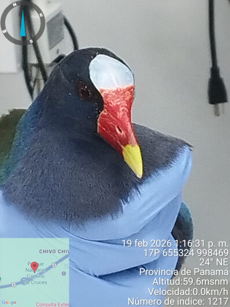Un ejemplar de Gallineta Morada (Porphyrio martinica) que presentaba dificultades motoras en una de sus alas fue rescatada por residentes