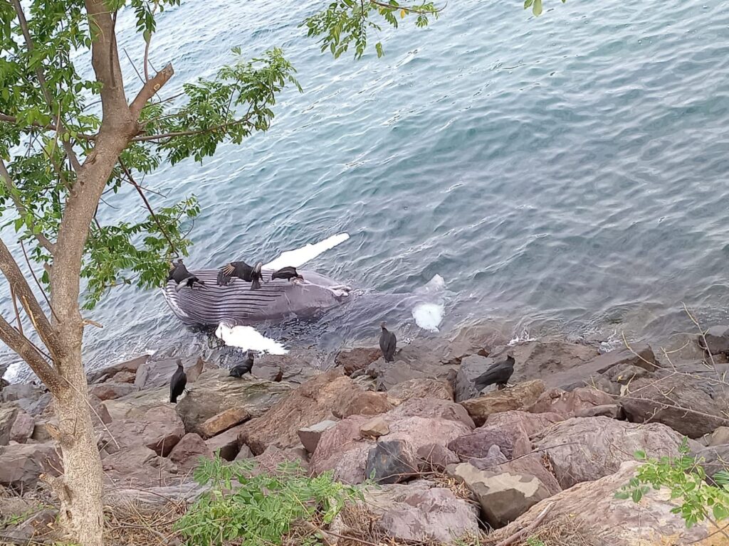 La mañana de hoy se recibió el reporte de un varamiento de una cría de ballena jorobada en el área