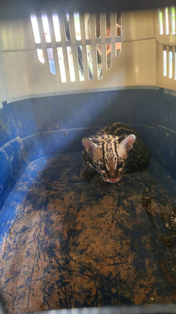Un ejemplar de ocelote o manigordo fue rescatado por funcionarios del Ministerio de Ambiente (MiAMBIENTE) en la comunidad de Quebrada