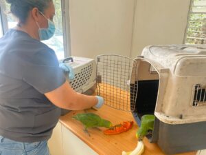 Tres pichones de loro (Amazona ochrocephala) avanzan en proceso de rehabilitación en Herrera