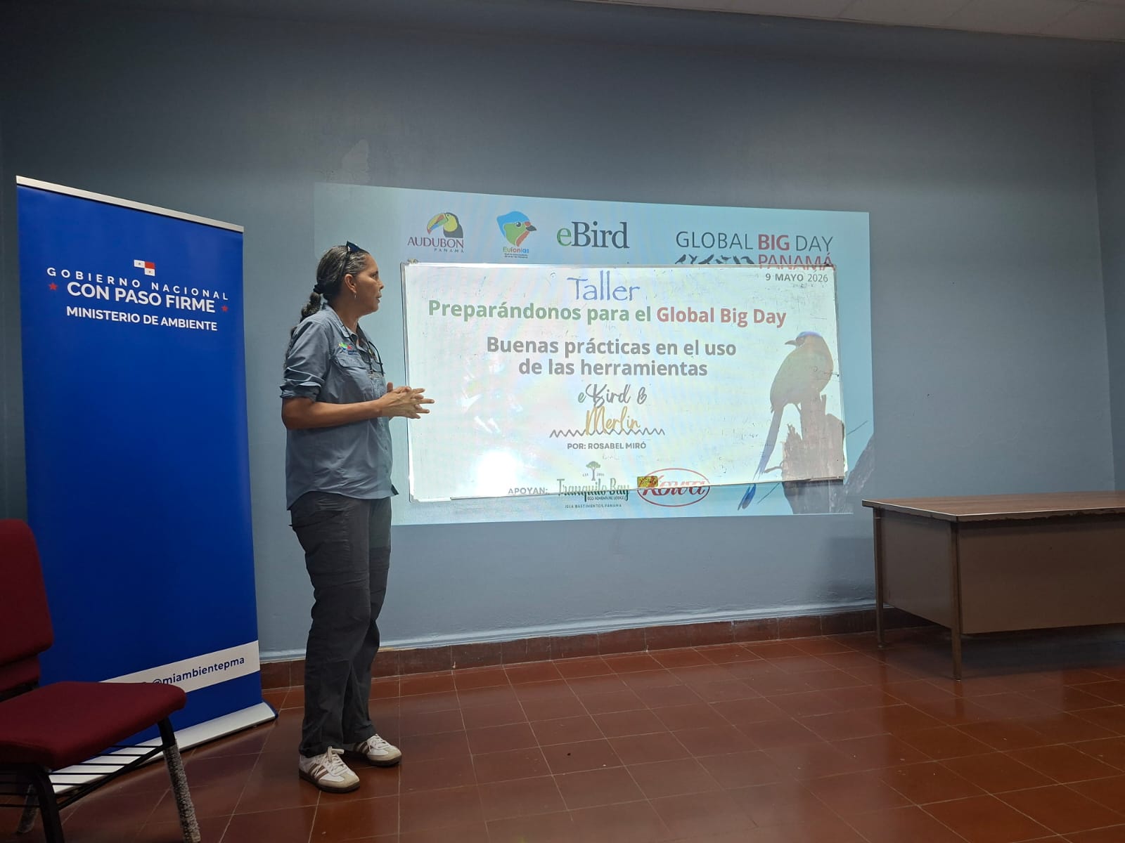 Ciudad de Panamá, 21 de abril de 2026. El Ministerio de Ambiente (MiAMBIENTE), en conjunto con Audubon Panamá y la Universidad de Panamá, desarrolló una jornada de capacitación en el marco del Global Big Day 2026, evento mundial que promueve la observación y el registro de aves a nivel mundial.