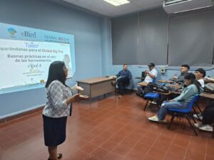 La actividad contó con la participación de estudiantes de la carrera de Turismo Ecológico de la Facultad de Humanidades de la Universidad de Panamá, quienes recibieron formación especializada en el uso de la herramienta digital eBird, plataforma que permite el registro sistemático de las especies de aves presentes en el campus universitario.